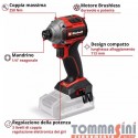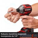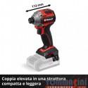 - Componente della famiglia Power X-Change, richiede 1 batteria da 18 V - Motore senza spazzole - Più potenza e maggiore autonomia di lavoro - Brushless 10 anni di garanzia sul motore dopo la registrazione - Compatta e potente - 3 livelli per la regolazione ottimale della coppia e del numero di giri - Sistema di percussione speciale che protegge il polso dalle forze di torsione - Regolazione elettronica del numero di giri per un lavoro confortevole - Inclusa luce a LED per illuminare l'area di lavoro - Funzione Quick Stop per facile cambio utensile - Robusto mandrino esagonale incorporato da 1/4" - Impugnatura ergonomica con Softgrip per una presa ottimale - Gancio per un facile stoccaggio temporaneo alla cintura - Consegna senza batteria e senza caricabatteria (acquistabili separatamente)