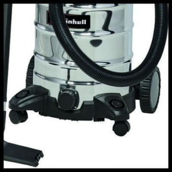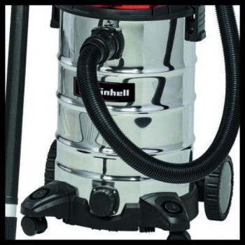 - Serbatoio in acciaio inossidabile da 30 litri - Attacco di soffiaggio per soffiare aria in punti difficilmente accessibili - Tubo in plastica a 3 elementi, diametro 36 mm - Incluso filtro in espanso per laspirazione di liquidi, filtro a pieghe e sacco di raccolta dello sporco in carta - Pratico passacavo per uno stivaggio ordinato - Con presa elettroutensile automatica - Bocchettone con vite di scarico dell'acqua - Tubi con Ø 36 mm per un elevato flusso di aria e sporco - Bocchettone di scarico dellacqua - Grandi ruote e rotelle per agevolare il trasporto - Incluso tubo flessibile di aspirazione in plastica Ø 36 mm, 2,5 m